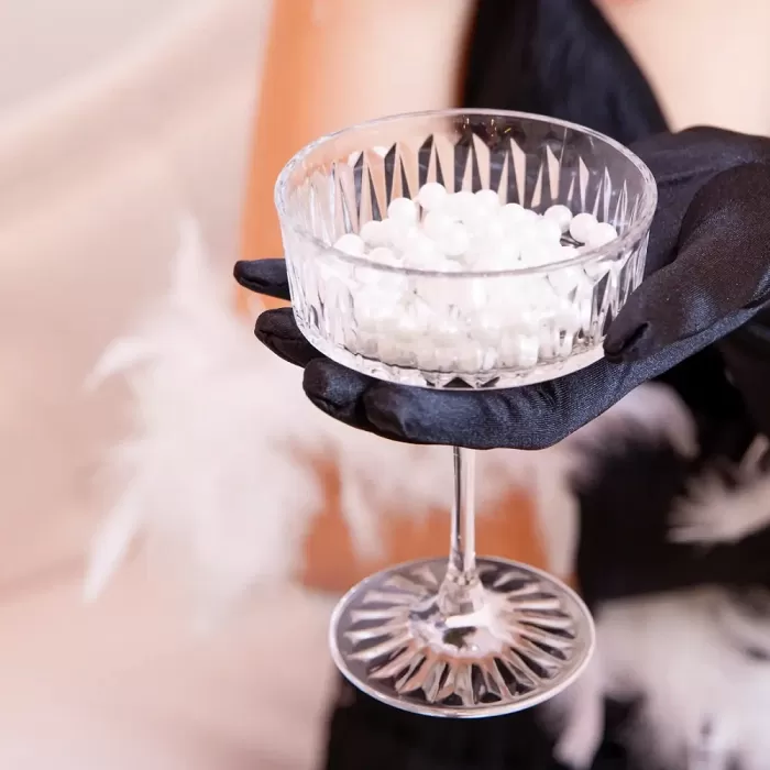 Dlouhý perlový náhrdelník o délce 80 cm je ideálním doplňkem pro party ve stylu 20. let, Velkého Gatsbyho nebo charleston. Bílé korále působí elegantně a nadčasově a díky své délce nabízí možnost náhrdelník omotat kolem krku, čímž vytvoříte bohatší a výraznější vzhled. Skvěle se hodí jako součást kostýmu na tematickou párty, karneval nebo retro oslavu. V kombinaci s rukavičkami, péřovým boa nebo třpytivými šaty snadno vykouzlíte stylový outfit inspirovaný érou jazzu a elegance. Jednoduchý, ale výrazný doplněk, který dodá každému kostýmu šmrnc a autentickou atmosféru 20. let. Délka: 80 cmBalení: 1 ks