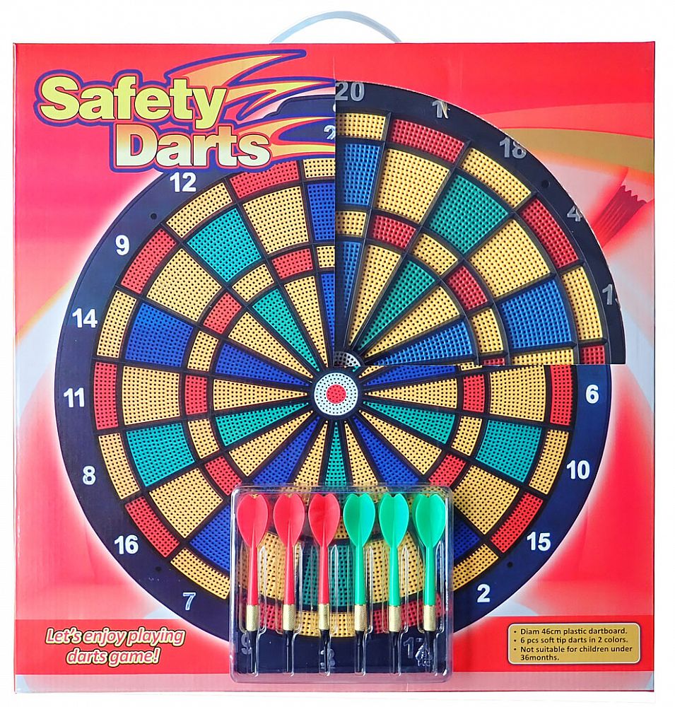 Terč - soft - dierkovaný na šípky s plastovými hrotmi, priemer 45 cm, + 6 šípok s plastovými bielymi hrotmi. Náhradné hroty v čiernej farbe sú súčasťou balenia (6 ks). Terč dodávame v prevedení, viď foto. Odporúčané pre hru, od 7 rokov veku.