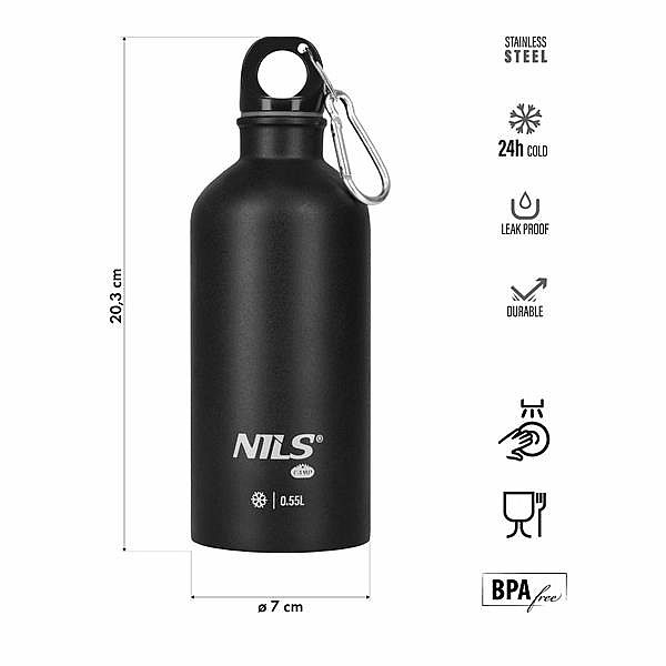 Popis: Nerezová turistická fľaša NILS Camp NC3801 čierna 500 ml