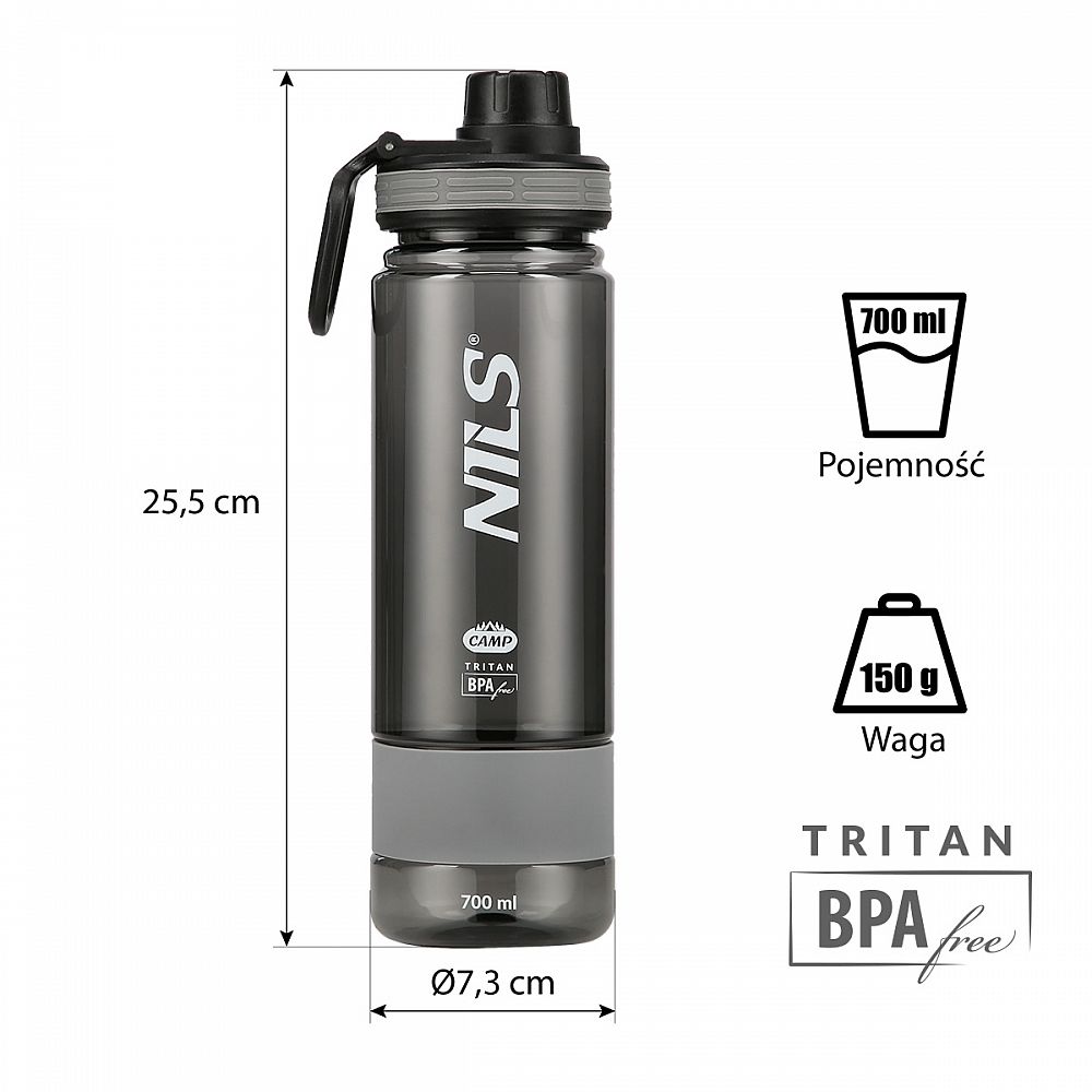 NILS Camp NCD07 je fľaša na vodu s objemom 700 ml a je vyrobená z tritánu.