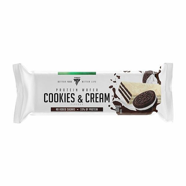 Proteínová oblátka TREC Nutrition s príchuťou cookies & cream je zdravšia verzia sladkej desiaty s vysokým obsahom srvátkových bielkovín, určená ľuďom, ktorí športujú a chcú sa lepšie stravovať. Chrumkavá oblátka s príchuťou cookies & cream poskytuje vynikajúci doplnok bielkovín do jedálnička vo forme sladkej desiaty.