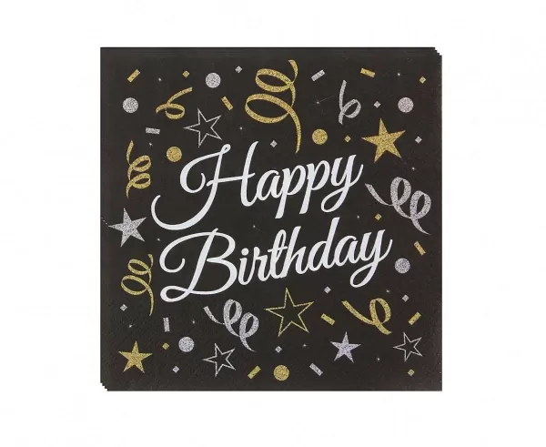 Popis: Papierové párty obrúsky Golden Silver Happy Birthday 20 ks