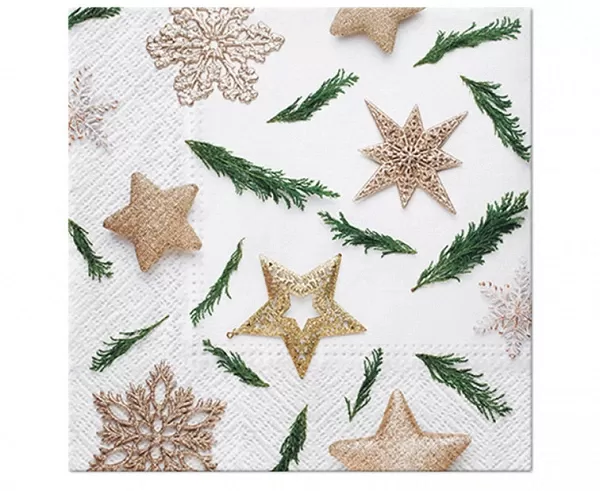 Popis: Papierové vianočné obrúsky vločky zlatá - strieborná 20 ks