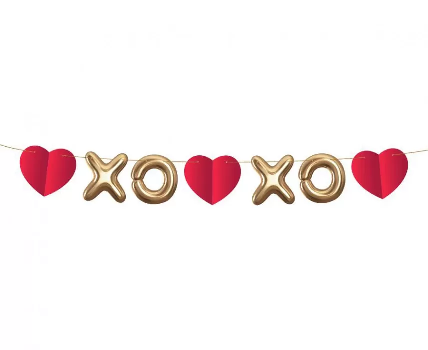Papierová girlanda s nápisom XOXO a so srdiečkami.
