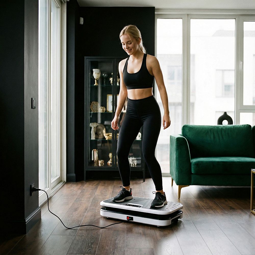 Model SVP09 pracuje v osi hore-dole, čím vytvára intenzívne vibrácie aktivujúce aj hlboké svalové skupiny. Intenzitu je možné nastaviť v rozsahu 1–120 úrovní podľa aktuálnej kondície a cieľa tréningu. Amplitúda vibrácií 1–2,8 cm zvyšuje účinnosť cvičenia a podporuje lepšie zapojenie svalstva.