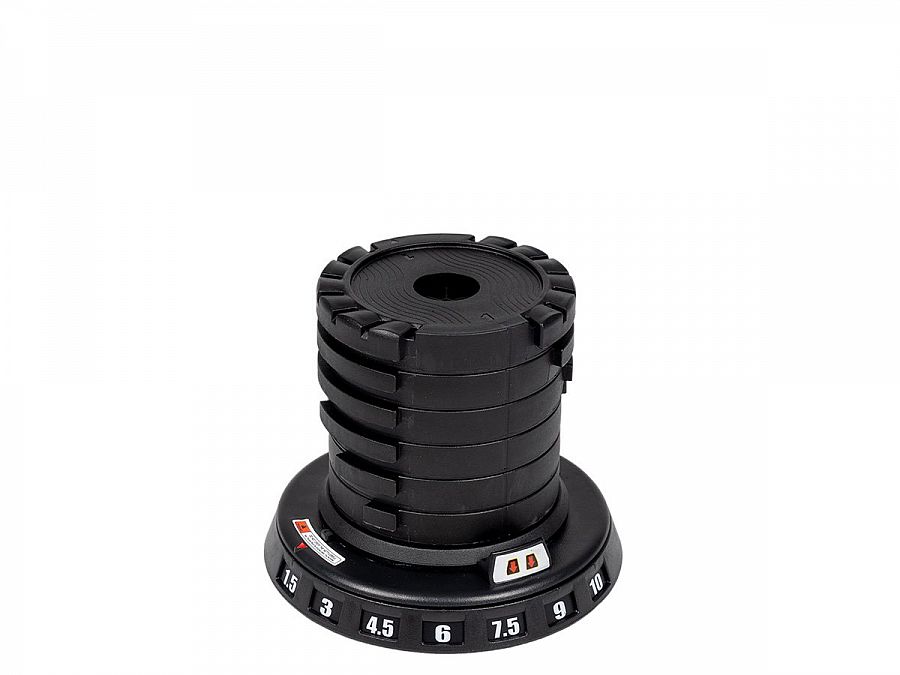 - 7 hmotnostných stupňov: 1,5 kg, 3 kg, 4,5 kg, 6 kg, 7,5 kg, 9 kg, 10 kg.