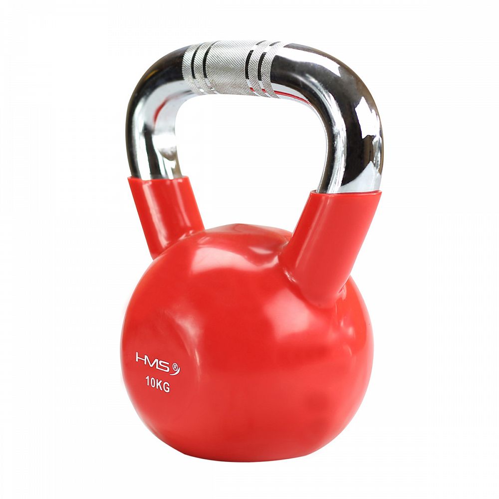 Popis: Kettlebell s chrómovaným úchopom HMS KTC 10 kg červený