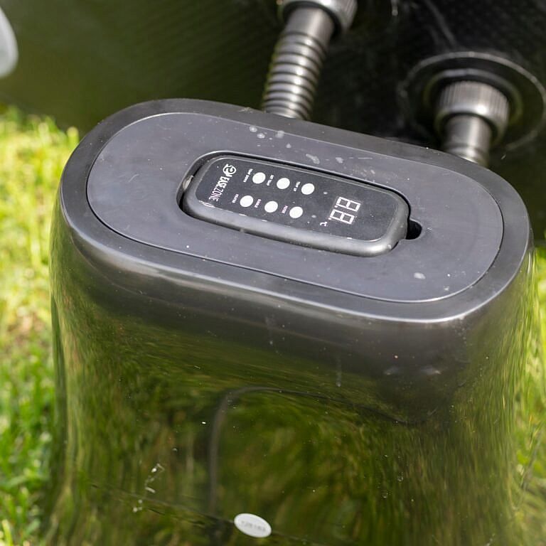 Štvorcová kúpeľná zóna EASE.ZONE 4-6 sa sama nafúkne pomocou mimoriadne tichého čerpadla integrovaného vo vnútri. Po pripojení dodanej vlnitej hadice jednoducho začnite nafukovať pomocou ovládacieho panelu.