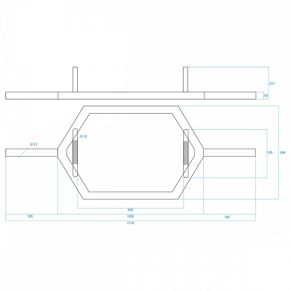 Olympijská os HEX GHX02 HMS so špeciálnym hexagonálnom tvarom. Os má vrúbkovanú rukoväť, vďaka ktorej už nemusíte mať strach, že Vám hriadeľ vykĺzne z ruky pri následných opakovaniach. Dizajn hriadeľa je založený na šesťuholníka, vďaka ktorému pri tréningu nedochádza k preťažovaniu chrbtice a kolien. Veľkou prednosťou je fakt, že cvičenec počas cvičenia funguje vo vnútri hriadeľa, čo má za následok minimalizovanie akéhokoľvek úrazu. Rám je vyrobený z trubiek s priemerom 40 mm a hrúbkou steny 2,5 mm. Maximálne zaťaženie až 450 kg. Hriadeľ je vhodná ako pre profesionálov, tak pre práve začínajúcich cvičencov.