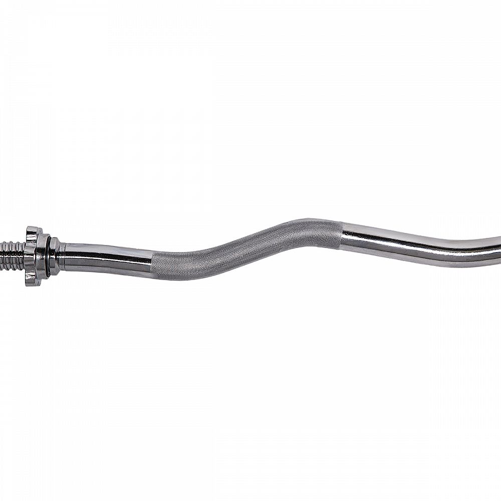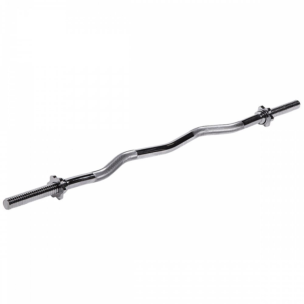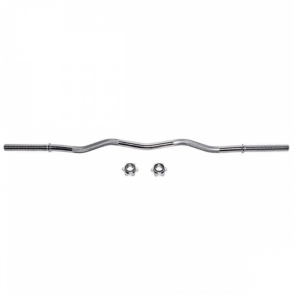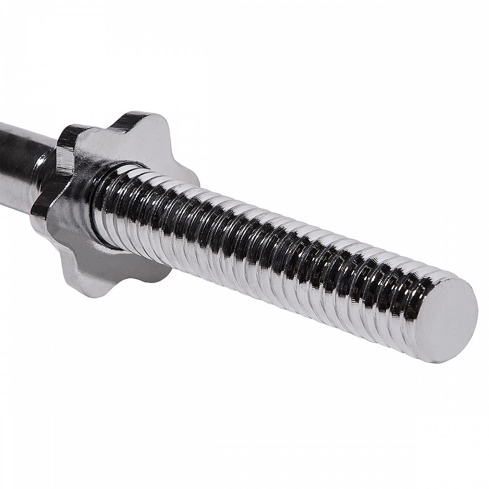 Hriadeľ mierne zlomená -120cm, matice v tvare hviezdy. Pre zaistenie pohodlného a bezpečného uchopenie, je rukoväť hriadeľa vrúbkovaná. Sada obsahuje dve skrutkové matice. Matica tohto typu zaručuje pri cvičení stabilnú polohu. Matica majú vo vnútri gumové tesnenie, aby sa zabránilo uvoľneniu zaťaženia. Hriadeľ je vyrobená z pevnej ocele, ktorá bola podrobená temperovanie. Priemer hrdla je 30 mm.