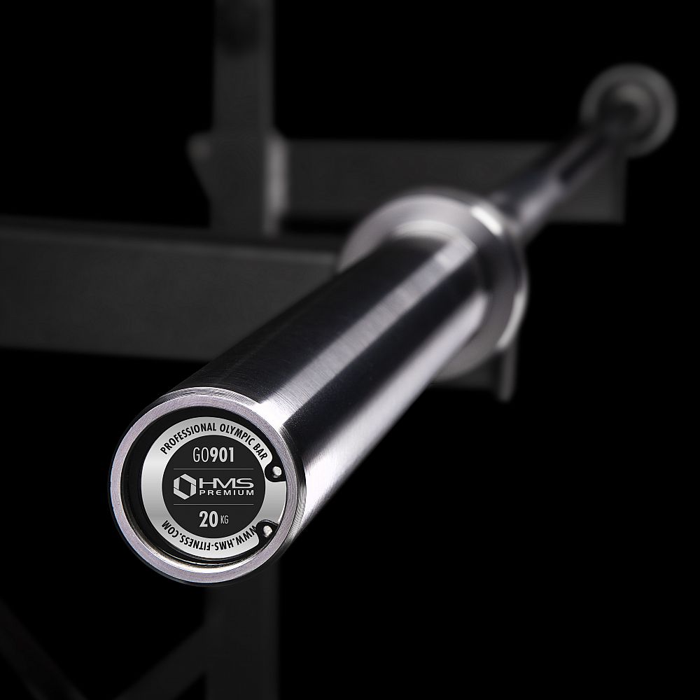 Olympijská os HMS Premium GO901 je vyrobená zo špeciálnej chrómovanej ocele, ktorá prešla procesom kalenia. Os GO901 sa vyznačuje pevnosťou v kombinácii s dokonalou pružnosťou. Súčasťou súpravy sú dva plastové uzávery ZG1000. Pevné a pohodlné uchopenie hriadeľa je zaistené vrúbkovaním na povrchu. Maximálne zaťaženie je 900 kg. Priemer úchopovej časti je 28 mm a zaisťuje vysokú odolnosť a pohodlie počas tréningu. Použitý proces chrómovania hriadeľa je zárukou zachovania jej vzhľadu po dlhú dobu jeho používania a tiež je najlepšou ochranou proti korózii. Olympijský hriadeľ HMS Premium GO901 má 8 ihličkových ložísk (4 na každej strane), ktoré umožňujú hladké a plynulé otáčanie rukávov na hriadeli. Jej konštrukcia znižuje napätie na koncoch valčekov, čo má za následok vyššiu životnosť ložísk. Napriek svojmu malému prierezu majú ihličkové ložiská vysokú tuhosť a nosnosť. Dva plastové uzávery nachádzajúce sa v balení zaručujú stabilné rozloženie záťaže na hriadeli počas tréningu. Uzávery majú vo vnútornej časti gumové elementy brániace tomu, aby sa závažie povolilo.