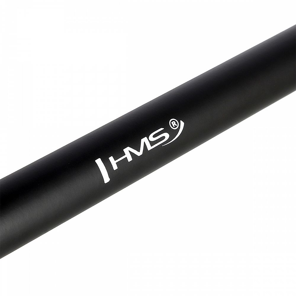 Osa k Body pumpu HMS GBP01 je vyrobená z chrómovanej ocele, ktorá zaručuje dlhú trvanlivosť produktu. Celá úchopová časť je pokrytá na dotyk príjemnou penou, vďaka ktorej sa os pohodlne a pevne drží, pena tiež zamedzuje skĺznutiu osi a tvorbe otlakov počas cvičenia. Súčasťou dodávky sú 2 pržinové svorky na zaistenie kotúčov.