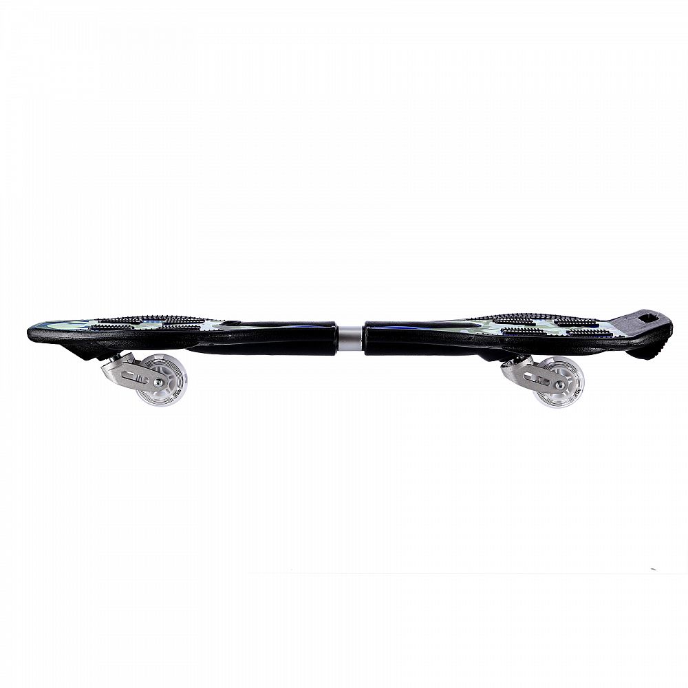 Waveboard je inovatívny skateboard, ktorý poskytuje mimoriadnu kontrolu a rýchlosť vďaka použitiu jedinečného mechanizmu na vyvažovanie telom. Užívateľ ho uvádza do pohybu dynamickými pohybmi bokov a nôh, čo umožňuje plynulé zrýchlenie bez toho, aby sa musel odrážať nohami od zeme. Vďaka tomu je jazda na waveboarde plynulá a intuitívna a zároveň ponúka skvelý tréning koordinácie a rovnováhy. Skateboard je navyše vybavený funkčnou brzdou na zadnej strane pre rýchle a bezpečné zastavenie. Vďaka tomu je WB001 vynikajúcou voľbou pre deti a dospievajúcich, ktorí chcú vyniknúť a užiť si bezpečnú jazdu na novej úrovni.