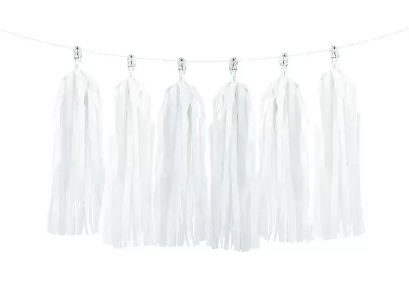 Girlanda strapce je skvelým doplnkom na dekoráciu vašej párty alebo narodeninovej oslavy, vďaka čistej bielej farbe prípadne aj svadby.