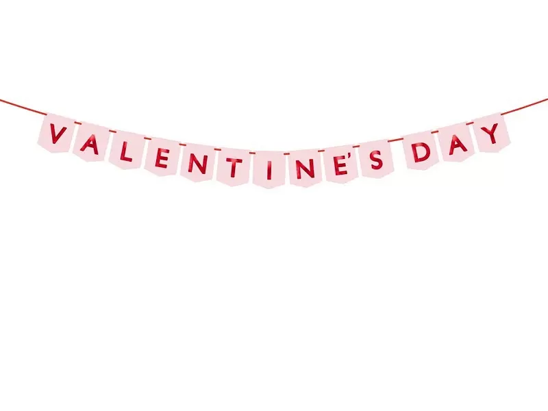Girlanda z papiera s nápisom Valentines Day o veľkosti 150 x 30 cm.