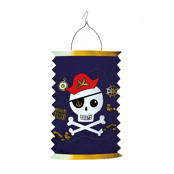Závesný lampión s motívom pirátskej lebky a pokladu.